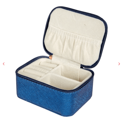 Perfekt litet smyckesskrin med tezt som rymmer 4st ringar och har 2st fack för annat, exempelvis armband/halsband.