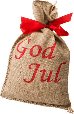 Jutesäck med texten "God Jul"